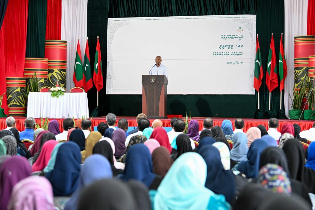 ”އެންމެ ކުޑަ ރަށުގެ ރައްޔިތުންނަށްވެސް އަޅުގަނޑު ދަންނަވާލަން އޮތީ، އެ ވާހަކަ. ދެމެހެއްޓެނިވި ގޮތެއްގައި ރާއްޖެ ތަރައްގީ ކުރުމުގައި، އެއީ ސަރަހައްދީ ތަރައްގީގެ މިންގަނޑުން ކުރާ ތަރައްގީ. އެކަން އެގޮތުގައި ކުރިއަށް ދިޔައިމަ، ދުރު ރާސްތާގައި، މި ދެންނެވީ ހަމަހަމަކަމާ އެކީގައި، ދެމެހެއްޓެނިވި ގޮތެއްގައި ހުރިހާ ރައްޔިތުންނަށް ހަމަހަމަ ތަރައްގީއެއް ގެނެސްދެވޭނީ،“ ރައީސް ވިދާޅުވި އެވެ.