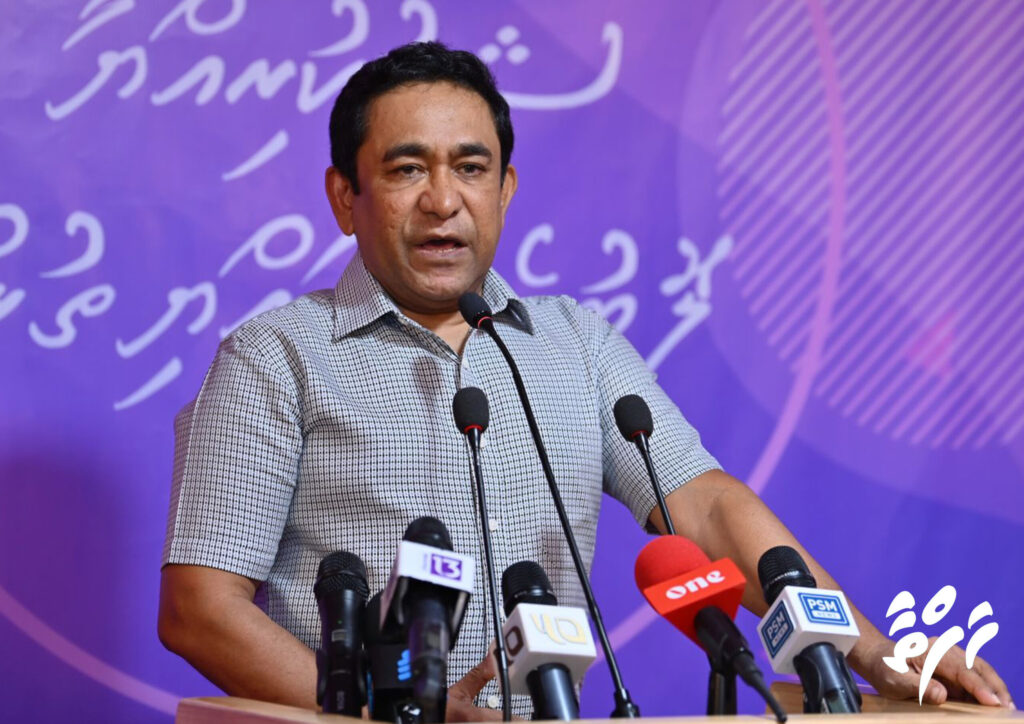 ”ރާއްޖެ މިއަދު މިއޮތް ހާލަތުގައި މި އޮތީކީ ކޮންމެހެން ޑރ. މުއިއްޒު މި ހާލަތަށް ރާއްޖެ ވައްޓާލައިގެންނެއް ނޫން. އޭގެވެސް ހަގީގަތް އެނގޭނެ. ފަސް އަހަރުގެ ވެރިކަމެއް ދިޔައިރު ރާއްޖެ މި ހާލަތަށް ގެނެސްފައި މި އޮތީ އެމްޑީޕީ ވެރިކަމެއްގައި ތިބެގެން. މިއަދު އެ ބޭފުޅުން އެބަ ވިދާޅުވޭ ދައުލަތް ހިންގާކަށްވެސް ނޭނގެއޭ، ފައިސާ މެނޭޖުކުރާކަށްވެސް ނޭނގެއޭ، ދަރަނި ފިލުވާކަށްވެސް ނޭނގެއޭ. އެކަމަކު ދަރަނި އުފެއްދީ ކޮންބައެއްކަން ގަބޫލުކުރާކަށް ބޭނުމެއް ނުވޭ، ދައުލަތުގެ މުއައްސަސާތައް މިނިވަން ނޫން ކަމަށް ވިދާޅުވޭ، ދައުލަތުގެ މުއައްސަސާތައް މިނިވަން ނުކޮށް އަތު މުށުތެރޭގައި ގެންގުޅުނީ ކޮންބައެއްކަންވެސް އެބަ އިނގޭ،“ ޔާމީން ވިދާޅުވި އެވެ.