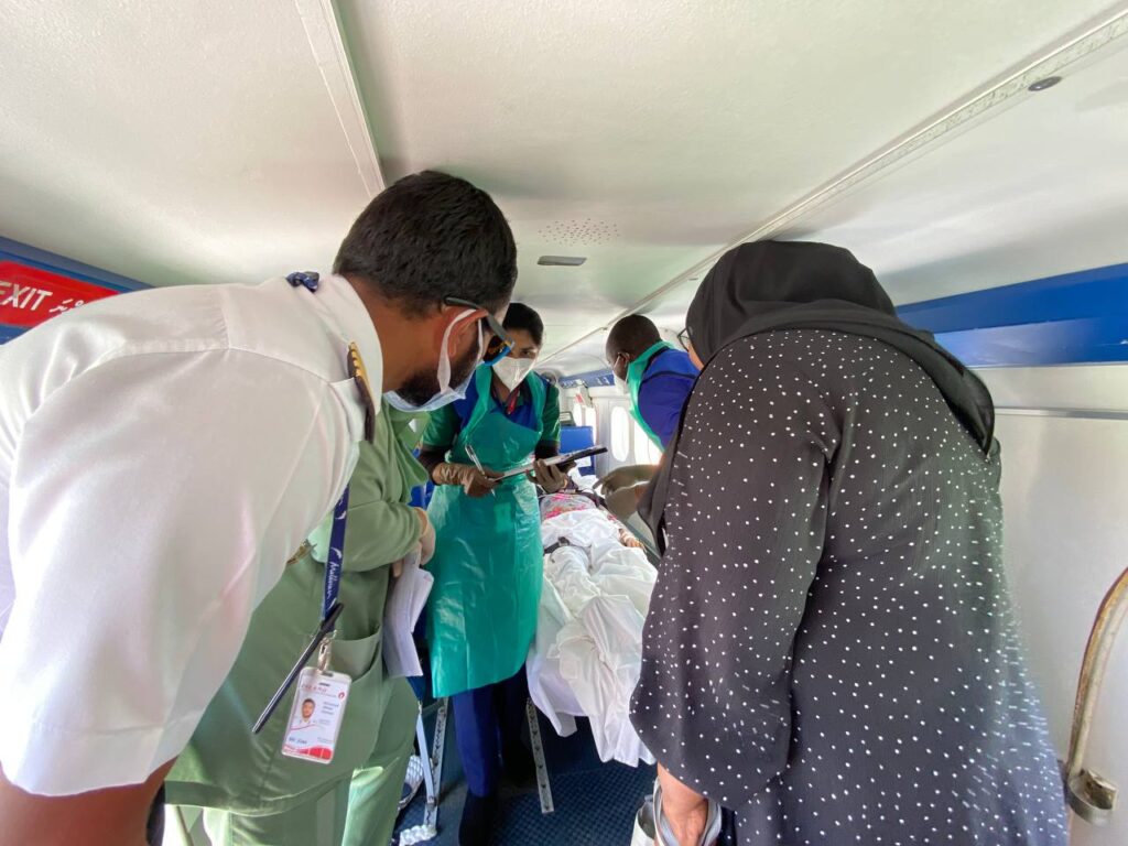 ސިއްހީ ކުއްލި ހާލަތްތަކުގައި ބަލި މީހުން އުފުލުމަށް އެއާ އެމްބިއުލާންސްގެ ހިދުމަތް ތައާރަފުކޮށް ހިދުމަތް ފެށީ މި މަހުގެ އެއްވަނަ ދުވަހު އެވެ.