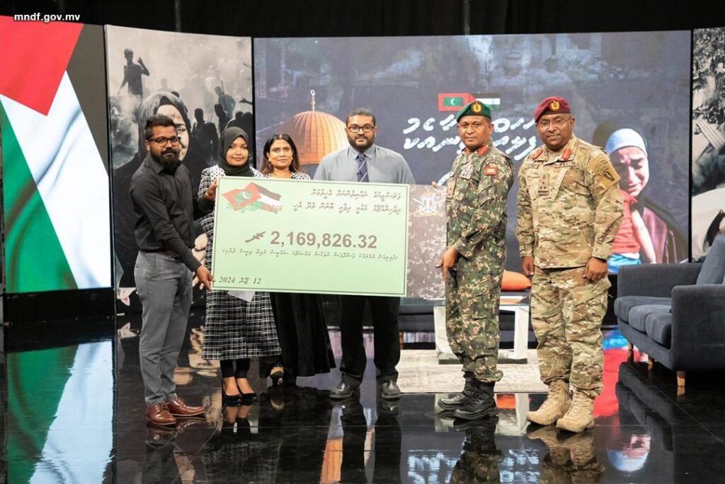 ފަލަސްތީނުގެ ރައްޔިތުންނަށް އެހީތެރިވުމަށްޓަކައި ގައުމީ ފެންވަރުގައި ކުރިއަށް ގެންދާ ޓެލެތޯނަށް އެމްއެންޑީއެފްގެ ފަރާތުން 2.1 މިލިއަން ރުފިޔާ މިއަދު ހަދިޔާކޮށްފި އެވެ. މިއީ ޓެލެތޯނަށް އެއްފަރާތަކުން ހަދިޔާކުރި އެންމެ ބޮޑު އަދަދެވެ.