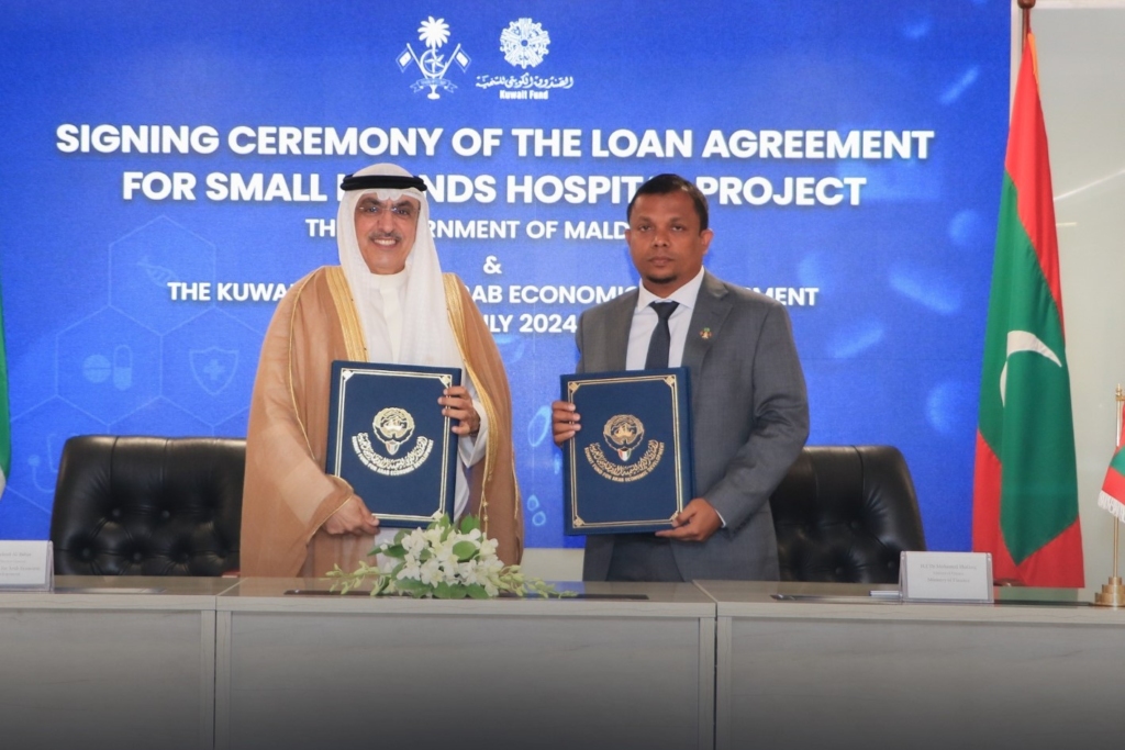 ރާއްޖޭގެ އުތުރާއި ދެކުނުގައި ހިމެނޭ ކުދި ރަށްރަށުގައި ހޮސްޕިޓަލްތައް އަޅަން ކުވޭތު ފަންޑް ފޯ އަރަބް އިކޮނޮމިކް ޑިވެލޮޕްމަންޓް (ކުވޭތް ފަންޑް) އިން 3،000،000 ކުވައިތީ ދީނާރު (150 މިލިއަން ދިވެހި ރުފިޔާ)ގެ ލޯނެއް ދޭން ނިންމައިފި އެވެ.