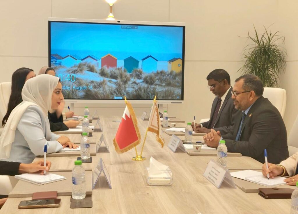ރާއްޖޭގެ ފަތުރުވެރިކަމުގެ ދާއިރާއަށް އިންވެސްޓުކުރުމާ ބެހޭގޮތުން ފޮރިން މިނިސްޓަރު މޫސާ ޒަމީރު، ބަހްރައިންގެ ޓޫރިޒަމް މިނިސްޓަރު ފާތިމާ ބިންތު ޖައްފާރު އަލް ސައިރާފީއާ ބައްދަލުކުރައްވައި މަޝްވަރާކޮށްފި އެވެ.