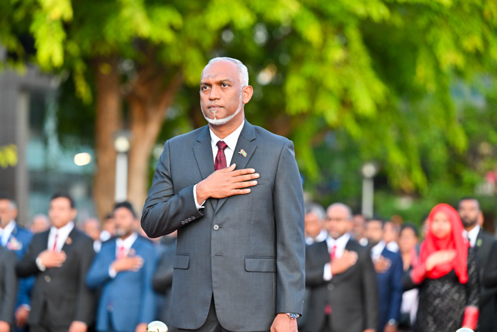 ގައުމީ ދުވަހުގެ ދިދަ ނެގުމުގެ ހާއްސަ ރަސްމިއްޔާތުގައި ރައީސް ޑރ. މުހައްމަދު މުއިއްޒާއި އެ މަނިކުފާނުގެ އަނބިކަނބަލުން މެޑަމް ސާޖިދާ މުހައްމަދު ބައިވެރިވެވަޑައިގެންފި އެވެ.