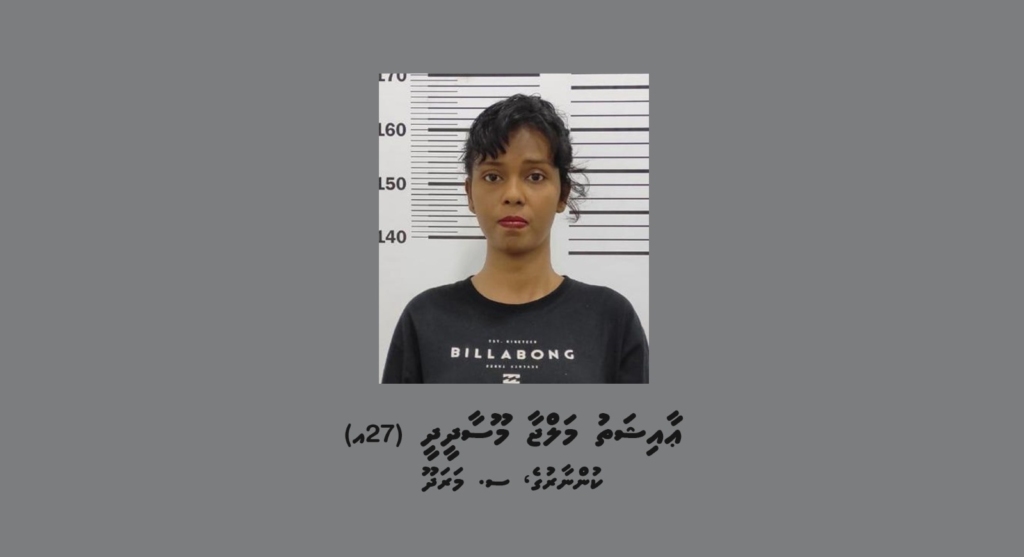 އެ މައްސަލައިގެ ތުހުމަތުގައި ފުލުހުން ވަނީ ސ. މަރަދޫ/ ކުންނާރުގެ، އާއިޝަތު މަލްޖާ މޫސާދީދީ، 27އ. ހައްޔަރުކޮށްފަ އެވެ. އަދި އޭނާގެ ބަންދަށް ކްރިމިނަލް ކޯޓުން ވަނީ 15 ދުވަސް ޖަހައިފަ އެވެ.