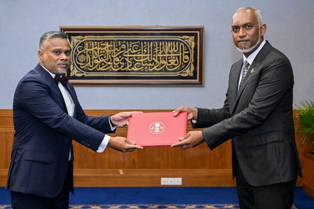 ރައީސް އޮފީހުގައި މިއަދު ހެނދުނު ބޭއްވި ރަސްމިއްޔާތެއްގައި ޕީޖީގެ މަގާމަށް އައްޔަން ކުރެއްވި އައްބާސްއަށް މަގާމުގެ ހުވައިލައިދެއްވީ ރާއްޖޭގެ އުއްތަމަ ފަނޑިޔާރު އޮނަރަބަލް އަލްއުސްތާޒު އަހުމަދު މުއުތަސިމް އަދުނާނެވެ.