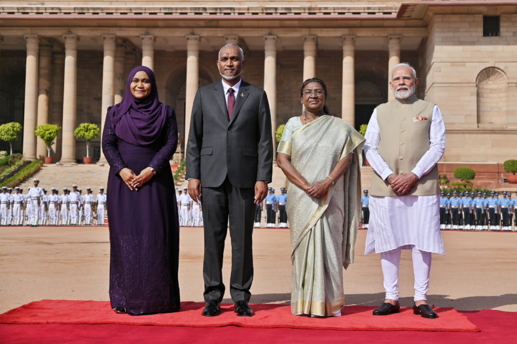 ރައީސް ޑރ. މުހައްމަދު މުއިއްޒު މިހާރު އިންޑިއާއަށް ކުރައްވަމުން ގެންދަވާ ފުރަމާނަ ދަތުރުގެ ތެރެއިން އިންޑިއާގެ ބޮޑުވަޒީރު ނަރެންދުރަ މޯދީ އެމަނިކުފާނުގެ ދެ ކަނބަލުންނަށް އެގައުމުން ރަސްމީކޮށް މަރުހަބާކިޔައިފި އެވެ.