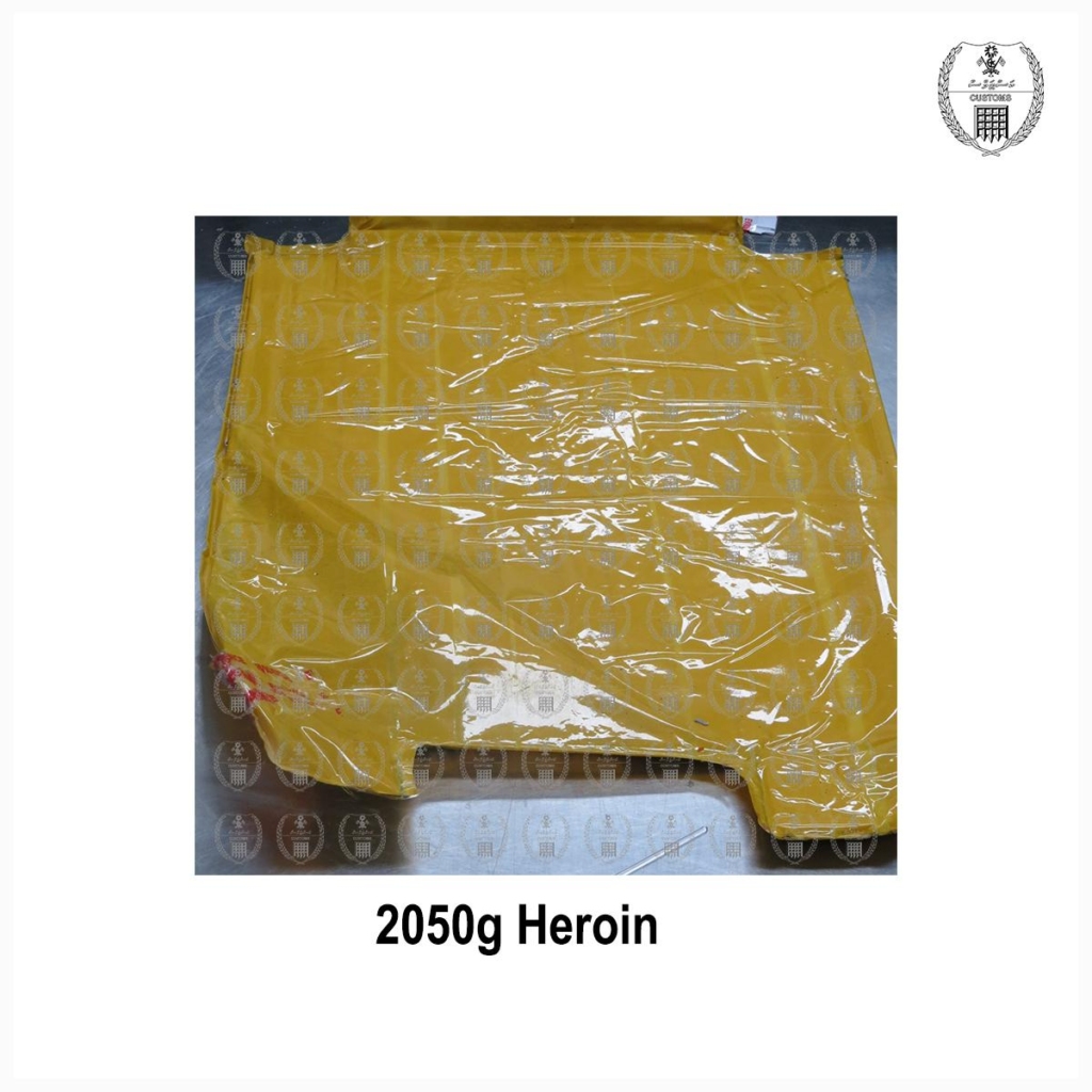 ކަސްޓަމްސް އިން ބުނީ، އެ މީހުންގެ ލަގެޖުން ފެނިފައިވަނީ ހެރޮއިން ކަމަށާއި އެ ތަކެތީގެ ބަރުދަނުގައި ޕެކިން އާއެކު ޖުމުލަ 2.05 ކިލޯ ހުރި ކަމަށެވެ. އެ ތަކެތީގެ މަގުމަތީ އަގު ދެ މިލިއަން ރުފިޔާއަށް އަރާނެ ކަމަށްވެސް ބުންޏެވެ.