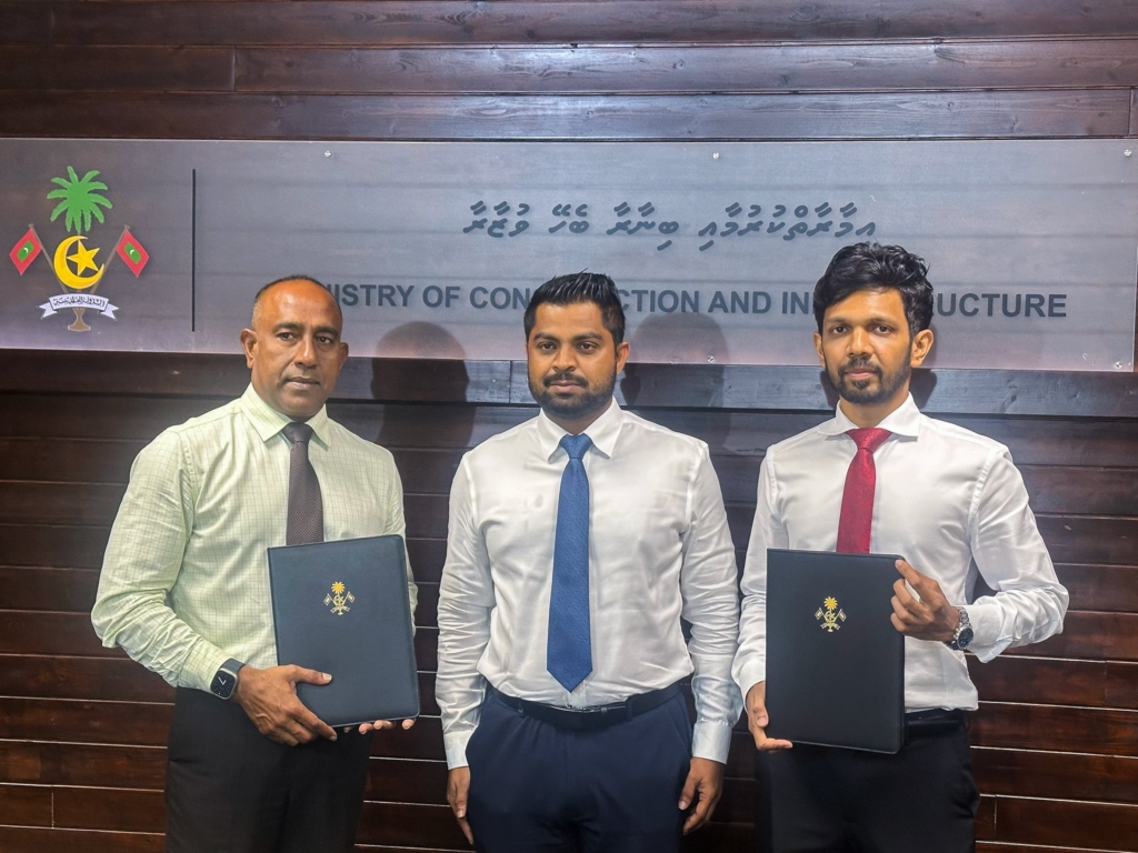 ކޮންސްޓްރަކްޝަން މިނިސްޓްރީގައި އިއްޔެ ބޭއްވި ރަސްމިއްޔާތުގައި އެއާޕޯޓަށް ބޭނުންވާ ބިން ހިއްކުމާއި ގޮނޑުދޮށް ހިމާޔަތްކުރުމުގެ މަސައްކަތް އެމްޓީސީސީއާ ހަވާލުކޮށް އެކަމުގެ އެއްބަސްވުމުގައި ވަނީ ސޮއިކޮށްފައެވެ.