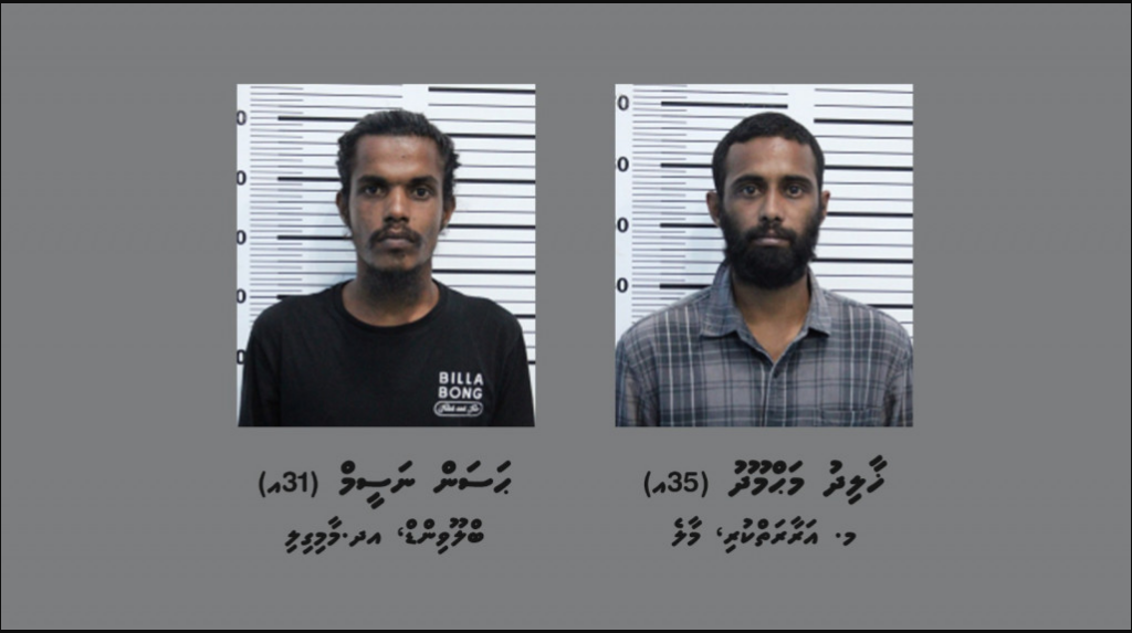 އެ ދެ މީހުން ތަހުގީގުގެ ބޭނުމަށް ކޯޓުގެ އަމުރަށް ބަންދުކޮށްފައިވީ ނަމަވެސް އިތުރު ތަފުސީލެއް ފުލުހުން ދީފައިނުވެ އެވެ.