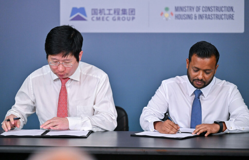 އެހެންވެ ރައީސް އޮފީހުގައި މިއަދު ބޭއްވި ރަސްމިއްޔާތެއްގައި ވަނީ އެ މަސައްކަތްތައް ޗައިނާގެ މެޝިނަރީ އިންޖިނިއަރިން ކޯޕަރޭޝަން (ސީއެމްއީސީ) ކުންފުންޏާއި ހަވާލުކޮށްފަ އެވެ.
