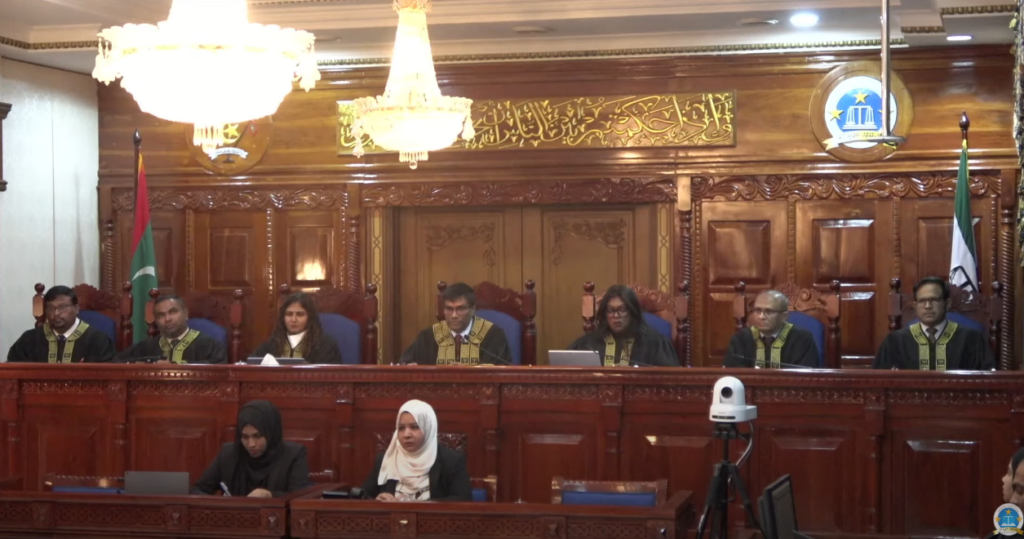 ފަނޑިޔާރުންގެ ސުވާލުތަކަށްފަހު ޝަރީއަތް ވަނީ ގާތްގަޑަކަށް 30 މިނިޓަށް މެދުކަނޑާލައިފަ އެވެ. އަލުން ޝަރީއަތް ފައްޓަވައިދެއްވައި އުއްތަމަ ފަނޑިޔާރު ވިދާޅުވީ ދައުލަތުން މި މައްސަލަ ބެލުމުގެ އިހުތިސޯސް ސުޕްރީމް ކޯޓަށް ލިބިގެންނުވާ ކަމަށް ވިދާޅުވެ އިޖުރާއީ ނުކުތާހެއް ފާހަގަ ކުރެއްވި ކަމަށެވެ. އެ އިޖުރާއީ ނިންމުމާމެދު ފަނޑިޔާރުންގެ ބެންޗުން މަޝްވަރާ ކުރެއްވުމަށްފަހު ނިންމާފައިވަނީ މި މައްސަލަ ބެލުމުގެ އިހުތިސޯސް ސުޕްރީމް ކޯޓަށް ލިބިގެންވާ ކަމަށެވެ.