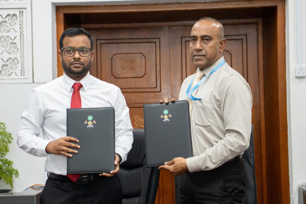 އެ މަސައްކަތް އެމްޓީސީސީއާ މިއަދު ހަވާލުކުރި އިރު، ކޮންސްޓްރަކްޝަން މިނިސްޓްރީގެ ފަރާތުން އެއްބަސްވުމުގައި ސޮއިކުރެއްވީ މިނިސްޓަރު ޑރ. އަބްދުﷲ މުއްތަލިބެވެ. އެމްޓީސީސީގެ ފަރާތުން ސޮއި ކުރެއްވީ މެނޭޖިން ޑިރެކްޓަރު އަހުމަދު ސައުދީ އެވެ.