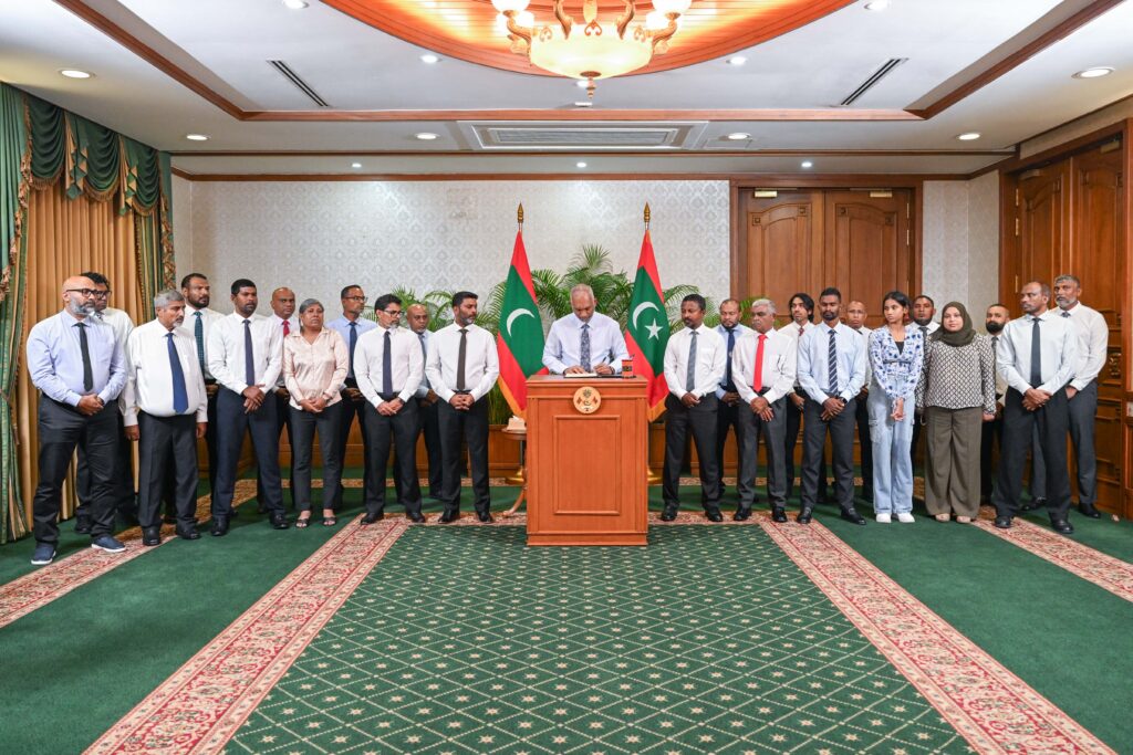 ރައީސް މުއިއްޒު އެ އިސްލާހު މިއަދު ތަސްދީގުކޮށްދެއްވީ ރައީސް އޮފީހުގައި އެކަމަށް ބޭއްވި ހާއްސަ ރަސްމިއްޔާތެއްގަ އެވެ. އެ ރަސްމިއްޔާތުގައި މިނިސްޓަރު އޮފް ސްޕޯޓްސް، ފިޓްނަސް އެންޑް ރެކްރިއޭޝަން އަބްދުﷲ ރާފިއު، އެޓާނީ ޖެނެރަލް އަހުމަދު އުޝާމްގެ އިތުރުން ކޮމިޝަނާ އޮފް ސްޕޯޓްސް، މޯލްޑިވްސް އޮލިމްޕިކް ކޮމިޓީގެ ރައީސް، ނޭޝަނަލް ސްޕޯޓްސް ކައުންސިލްގެ ރައީސް، ކުޅިވަރުގެ ދާއިރާގެ އެހާރާއި މިހާރުގެ މަޝްހޫރު ބޭފުޅުން ރައީސްގެ އަރިހުގައި ބައިވެރިވެވަޑައިގެންނެވި އެވެ.