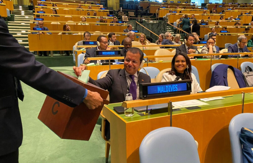 އދ. ގެ އާންމު މަޖިލީހުގެ ކޮންމެ ސެޝަނަކަށް އޭޝިއާ ޕެސިފިކް ގުރޫޕުގެ ތެރެއިން ފަސް ނައިބު ރައީސުން އިންތިހާބުކުރެ އެވެ. ރާއްޖޭގެ އިތުރުން، އަނެއް ހަތަރު ގޮނޑިއަށް ކުރިމަތިލި، ބަންގްލަދޭޝް އާއި ލުބުނާނާއި ސައޫދީ އަރަބިއްޔާ އާއި ޓިމޯ-ލެސްޓް ވަނީ މިރޭ ބޭއްވި އާންމު މަޖިލީހުގެ ބައްދަލުވުމުގައި އިންތިހާބު ކޮށްފަ އެވެ.