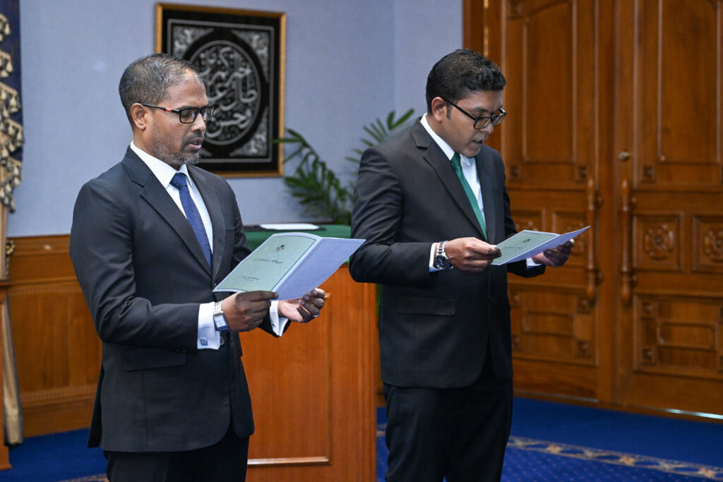 ރައީސް އޮފީހުގައި މިއަދު ބޭއްވި ރަސްމިއްޔާތެއްގައި ރައީސް ޑރ. މުހައްމަދު މުއިއްޒު ވަނީ އެ ދެ ބޭފުޅުން އެ މަގާމަށް އައްޔަން ކުރައްވައިފަ އެވެ.