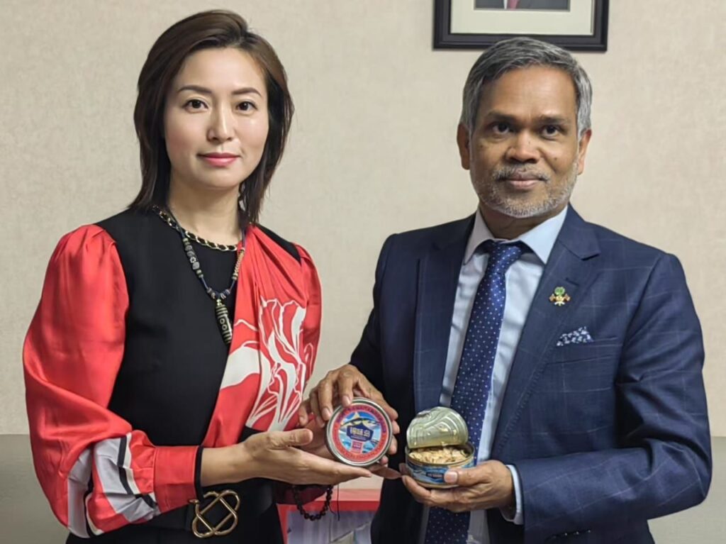 ފިޝަރީޒް މިނިސްޓަރު އަހުމަދު ޝިޔާމް އެކްސްގައި މިއަދު ކުރެއްވި ޕޯސްޓެއްގައި ވިދާޅުވީ އެއީ ރާއްޖެއާއި ޗައިނާއާ ދެމެދު ހެދިފައިވާ ފްރީ ޓްރޭޑް އެގްރީމެންޓުގެ ދަށުން އެޅުނު މުހިންމު ފިޔަވަޅެއް ކަމަށާއި އެ އެއްބަސްވުމުގެ ދަށުން އިމްޕޯޓް ޑިއުޓީއާ ނުލައި ދިވެހި މަސްވެރި އުފެއްދުންތައް ޗައިނާއަށް އިމްޕޯޓް ޑިއުޓީ ނުނަގައި އެތެރެކުރުމުގެ ފުރުސަތު ލިބިގެންދާނެ ކަމަށެވެ.