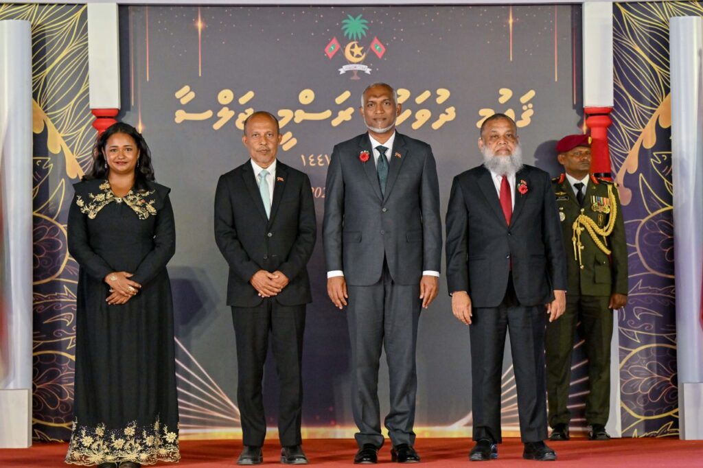 ހއ. އުތީމުގައި މިއަދު ހެނދުނު ބޭއްވި ގައުމީ ދުވަހުގެ ރަސްމީ ޖަލްސާގައި ޝަރަފުވެރިކަމުގެ ގައުމީ އިނާމު ލިބިވަޑައިގެންނެވި ބޭފުޅުންނަށް ޝަރަފުގެ އައްޑަނަ އާއި ޝަރަފުގެ ބެޖާއި ލިޔުން އަދި ހިތްވަރު ދިނުމުގެ ގައުމީ އިނާމު ލިބިވަޑައިގެންނެވި ބޭފުޅުންނަށް ހަނދާނީ ފިލަ އާއި ހަނދާނީ ލިޔުން ދެއްވީ ރައީސް ޑރ. މުހައްމަދު މުއިއްޒެވެ.