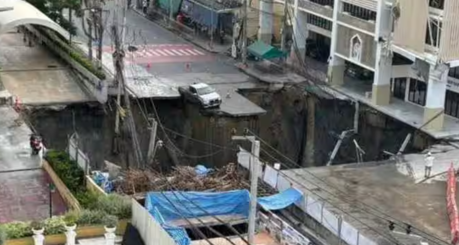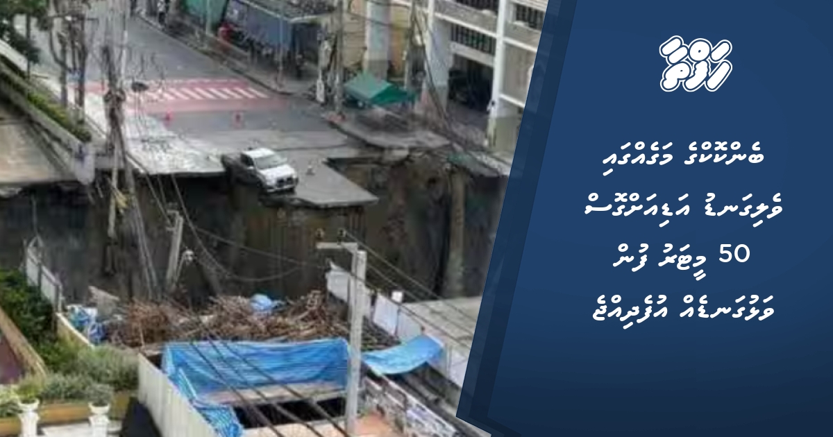 ބެންކޮކްގެ މަގެއްގައި ވެލިގަނޑު އަޑިއަށްގޮސް 50 މީޓަރު ފުން ވަޅުގަނޑެއް އުފެދިއްޖެ