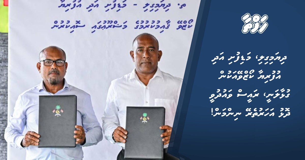 މި ތިން ރަށް ކޯޒްވޭއަކުން ގުޅާލުމުގެ އެއްބަސްވުމުގައި ސޮއިކޮށްފައި ވަނީ ރައީސް ޑރ. މުހައްމަދު މުއިއްޒު ދިޔަމިގިއްޔަށް މިއަދު ވަޑައިގެން އެ ރަށުގެ ރައްޔިތުންނާ ބައްދަލުކުރެއްވުމަށް ބޭއްވި ރަސްމިއްޔާތުގައެވެ.