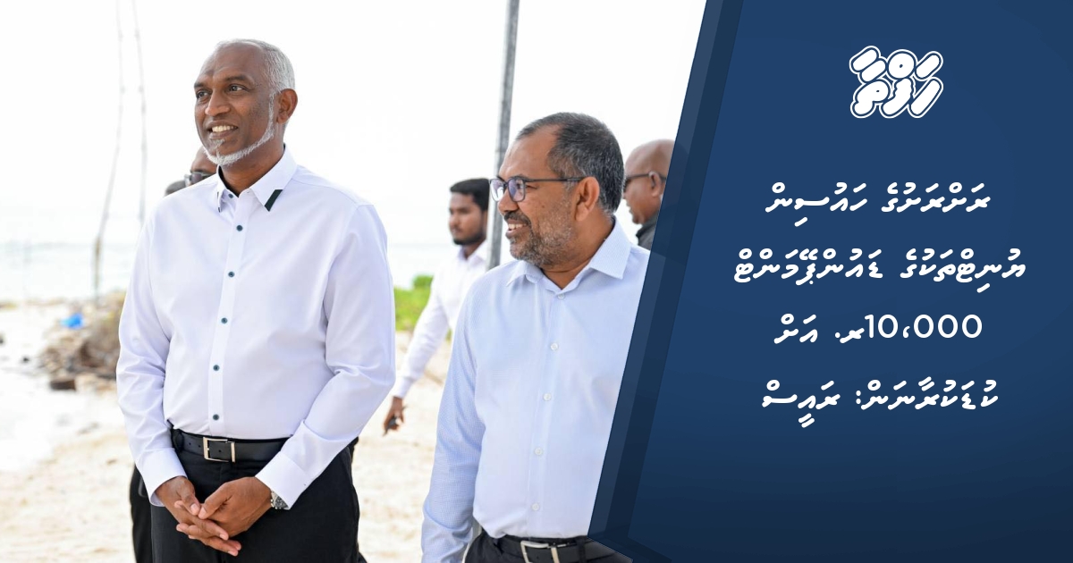 ސަރުކާރުން ރަށްރަށުގައި ހަދާ ހައުސިން ޔުނިޓްތަކުގެ ޑައުންޕޭމަންޓް 10،000 ރުފިޔާއަށް ކުޑަކޮށްދެއްވާނެ ކަމަށް ރައީސް ޑރ. މުހައްމަދު މުއިއްޒު ވިދާޅުވެއްޖެ އެވެ.