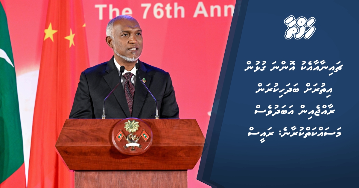 ރާއްޖެއާއި ޗައިނާއާ ދެމެދުގައި އޮންނަ ޒަމާންވީ ގާތް ރަހުމަތްތެރި ގުޅުން އިތުރަށް ބަދަހިކުރެއްވުމަށް ރާއްޖެއިން އަބަދުވެސް މަސައްކަތް ކުރައްވާނެ ކަމަށް ރައީސް ޑރ. މުހައްމަދު މުއިއްޒު މިއަދު ވިދާޅުވެއްޖެ އެވެ.