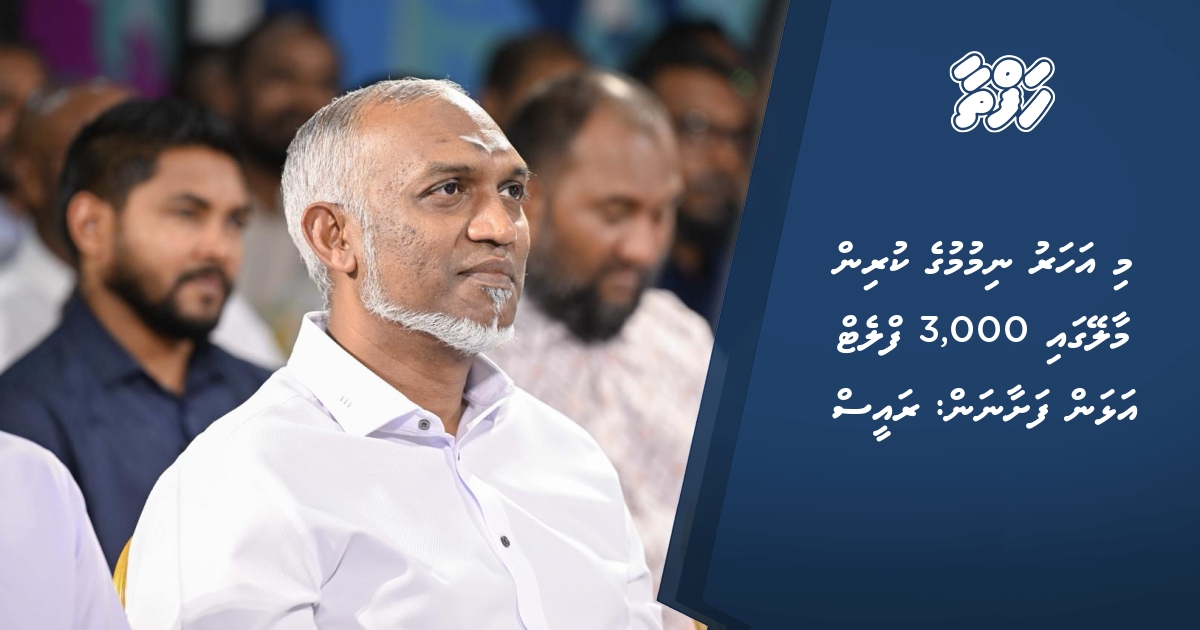 މި އަހަރު ނިމުމުގެ ކުރިން މާލޭގައި 3,000 ހައުސިން ޔުނިޓުގެ މަޝްރޫއެއް ފައްޓަވާނެ ކަމަށް ރައީސް ޑރ. މުހައްމަދު މުއިއްޒު ވިދާޅުވެއްޖެއެވެ.