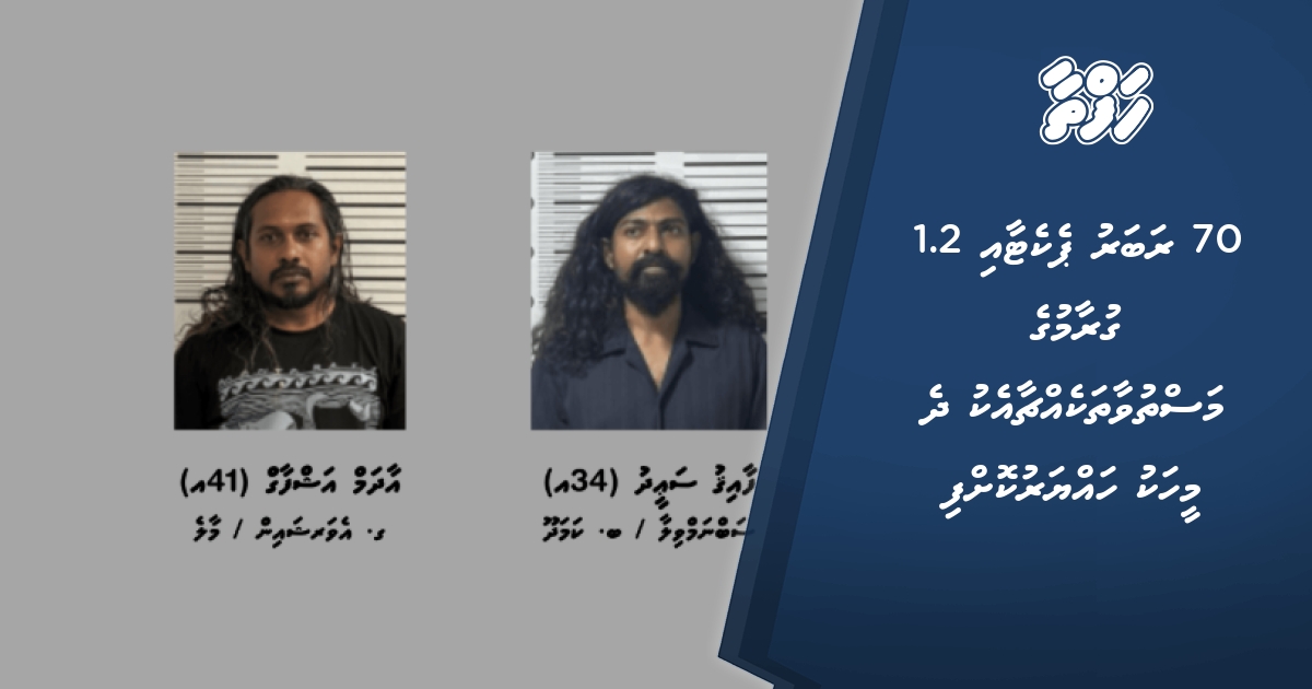 ފުލުހުން ހިންގި އޮޕްރޭޝަނެއްގައި މަސްތުވާތަކެތި ކަމަށް ޝައްކު ކުރެވޭ 70 ރަބަރު ޕެކެޓާއި 1.2 ގުރާމުގެ މަސްތުވާތަކެއްޗާއެކު ދެމީހަކު ހައްޔަރުކޮށްފިއެވެ.