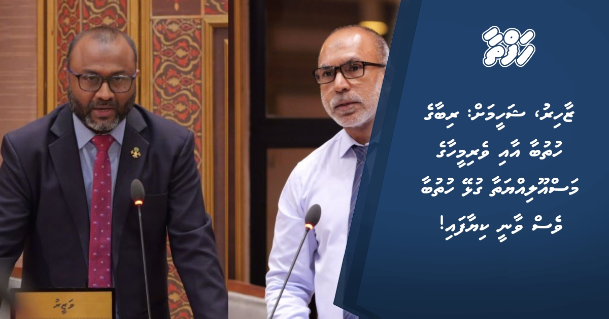 ރައްޔިތުންގެ މަޖިލީހުގެ މިއަދުގެ ޖަލްސާގައި ވާހަކަދައްކަވަމުން މިނިސްޓަރު ޝަހީމް ވިދާޅުވީ ވޭތުވެދިޔަ ފަސް އަހަރު ދުވަހުގެ ތެރޭގައި ދެ ހުތުބާއެއް ފޮރުވައިފައި އޮތް ކަމަށާއި އެއީ ރިބާގެ ހުތުބާ އާއި ވެރިމީހާގެ މަސްއޫލިއްޔަތާ ގުޅޭ ހުތުބާއެއް ކަމަށެވެ.