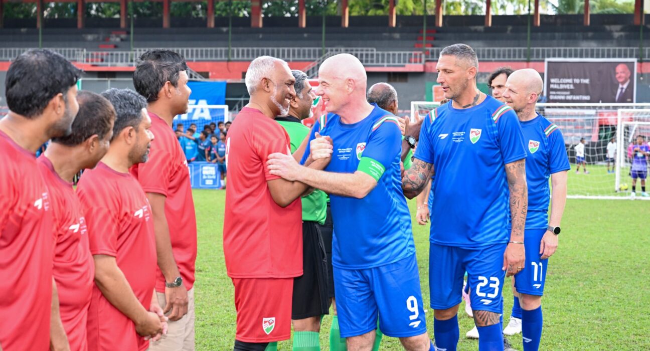 ރައީސް ޑރ. މުހައްމަދު މުއިއްޒުގެ ޓީމާ ދެކޮޅަށް ކުޅުނު މެޗުން ފީފާގެ ރައީސް ޖިއާނީ އިންފަންޓީނޯގެ ޓީމު މޮޅުވެއްޖެއެވެ.