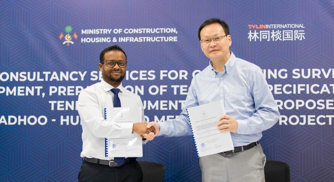 ޗައިނާގެ ޓީވައިލިން އިންޓަނޭޝަނަލް އިންޖިނިއަރިން ކޮންސަލްޓިން ކޮމްޕެނީ ލިމިޓެޑް (ޓީވައިލިން) އާ އެ މަސައްކަތް ހަވާލުކުރުމަށް ކޮންސްޓްރަކްޝަން މިނިސްޓްރީގެ ފަރާތުން އެއްބަސްވުމުގައި ސޮއިކުރެއްވީ މިނިސްޓަރު ޑރ. އަބްދުﷲ މުއްތަލިބެވެ. އަދި ޓީވައިލިންގެ ފަރާތުން ސޮއިކުރެއްވީ އެ ކުންފުނީގެ ޗައިނާ ބްރާންޗްގެ ޕްރެސިޑެންޓް ޗެން ޝީއޯހޫއެވެ.