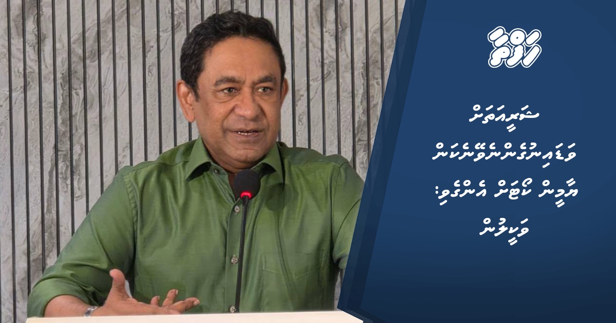 ނަމަވެސް ރައީސް ޔާމީން އެ ޝަރީއަތަށް ވަޑައިނުގެންނެވުމުން އެ މައްސަލައިގެ ޝަރީއަތް ވަނީ ކެންސަލްކޮށްފައެވެ. ރައީސް ޔާމީން ޝަރީއަތަށް ވަޑައިނުގެން، އެ މަނިކުފާނު ވަނީ ހއ. އަތޮޅު ކައުންސިލް އެވޯޑު ”ތިލައުތުރު އެވޯޑް 2025“ ހަފުލާ ޝަރަފުވެރިކޮށް ދެއްވުމަށް މިއަދު ހއ. ދިއްދުއަށް ވަޑައިގެންފައެވެ.