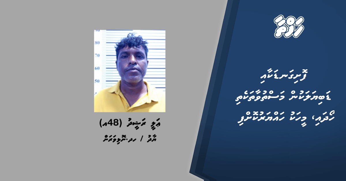 އެ މައްސަލައިގައި ފުލުހުން ހައްޔަރުކޮށްފައިވަނީ، ހދ. ނޮޅިވަރަމް، ޔާދު، އަލީ ރަޝީދު (48އ) އެވެ.