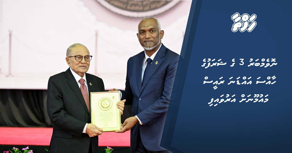 ނިޝާން ގާޒީގެ އިއްޒަތުގެ ވެރިޔާ، ކުރީގެ ރައީސް މައުމޫން އަބްދުލްގައްޔޫމަށް ނޮވެމްބަރު 3 ގެ ޝަރަފުގެ ހާއްސަ އައްޑަނައެއް އަރުވައިފިއެވެ.