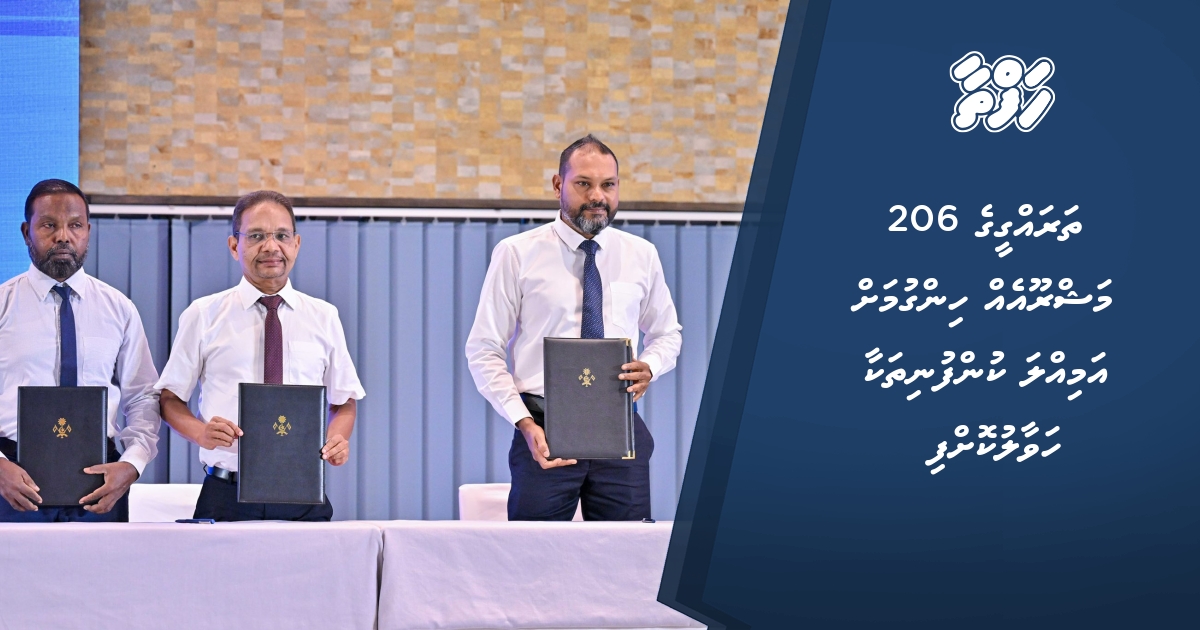 ގިނަ ރަށްތަކެއްގެ ތަރައްގީގެ 206 މަޝްރޫއެއްގެ ހިންގުމަށް އަމިއްލަ ކުންފުނިތަކާ ހަވާލުކުރުމަށް އެއްބަސްވުމުގައި ސޮއިކޮށްފިއެވެ.
