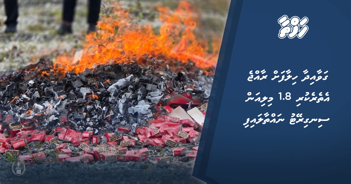ގަވާއިދާ ހިލާފަށް ރާއްޖެއަށް އެތެރެކުރަން އުޅެނިކޮށް މޯލްޑިވްސް ކަސްޓަމްސް އިން ހިފަހައްޓާފައި ހުރި 1,830,000 ސިނގިރޭޓު ސްޓިކްސް ނައްތާލައިފި އެވެ.