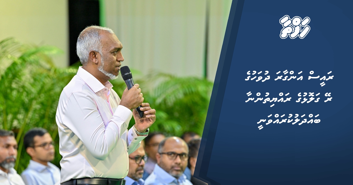 ރައީސް ޑރ. މުހައްމަދު މުއިއްޒު، މާލޭ ރައްޔިތުންނާ ބައްދަލުކުރެއްވުމަށް މިހާރު ކުރިއަށްގެންދަވާ ސިލްސިލާ ބައްދަލުވުންތަކުގެ ތެރެއިން އަންނަ އަންގާރަ ދުވަހުގެ ރޭ ގަލޮޅުގެ ރައްޔިތުންނާ ބައްދަލުކުރައްވަން ނިންމަވަައިފި އެވެ.
