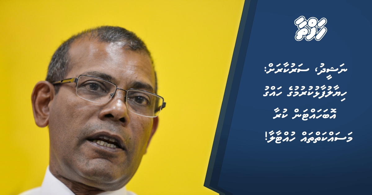 ”އެއްވެ އުޅުމާއި ހިޔާލުފާޅުކުރުމުގެ ހައްގު އޮބަހައްޓަން މި ކުރާ މަސައްކަތްތައް ހުއްޓާލަން ޖެހޭ،“ ނަޝީދު ވިދާޅުވިއެވެ.
