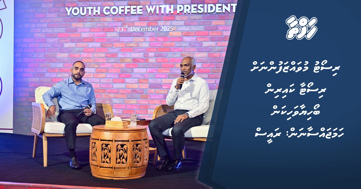 ”ޔޫތު ކޮފީ ވިތު ޕްރެޒިޑެންޓް“ގެ ނަމުގައި ޒުވާނުންނާއެކު ޒުވާނުންގެ އެތެރެވެހީގައި މިރޭ ބޭއްވި އިވެންޓުގައި ވާހަކަފަޅުދައްކަވަމުން ރައީސް ވިދާޅުވީ އާއިލާއާ ދުރަށް ގޮސް ޓޫރިޒަމް ދާއިރާގައި މަސައްކަތްކުރުމަށް އުނދަގޫތަކެއް ހުންނަ ކަމަށެވެ.