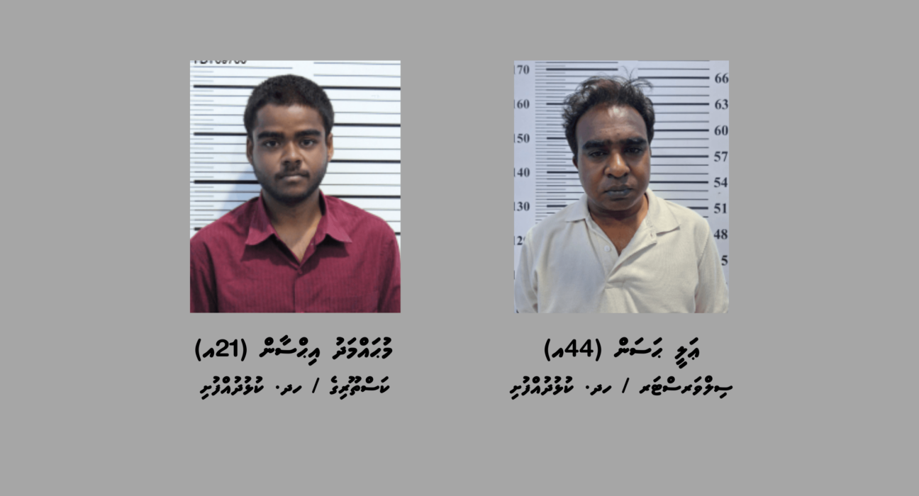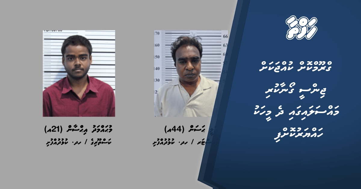 މި މައްސަލައާ ގުޅިގެން ފުލުހުން ހައްޔަރުކޮށްފައިވަނީ ހދ. ކުޅުދުއްފުށި / ސިލްވާސްޓާ، އަލީ ހަސަން (44އ) އާއި ހދ. ކުޅުދުއްފުށި / ކަސްތޫރިގެ، މުހައްމަދު އިހުސާން (21އ) އެވެ.