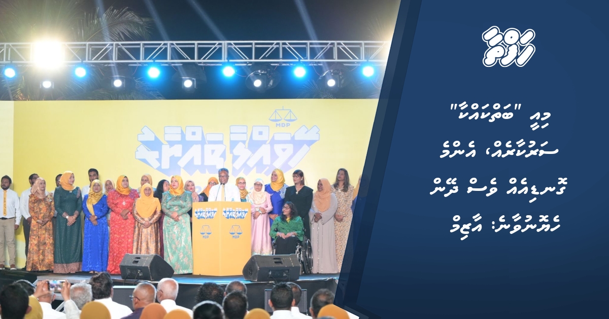 ލޯކަލް ކައުންސިލު އިންތިހާބާއި އަންހެނުންގެ ތަރައްގީއަށް މަސައްކަތްކުރާ ކޮމިޓީ އިންތިހާބަށް އެމްޑީޕީގެ ކެމްޕޭން ރަސްމީކޮށް ފެށުމަށް މިރޭ ބޭއްވި ”ހޭވައްލާ ތައްޔާރު“ ޖަލްސާގައި ވާހަކަދައްކަވަމުން އާޒިމް ވިދާޅުވީ ދާދިފަހުން އިއްވި ރިޔާސީ ބަޔާނުގައި ވެސް ރައީސް ޑރ. މުހައްމަދު މުއިއްޒު ވައުދުފަތި އަމުނަމުން، އަމުނަމުން ގޮސް، ދެ އަހަރު ކުރިން ވީ ވައުދު ވެސް އާކޮށްފައިވާ ކަމަށެވެ.