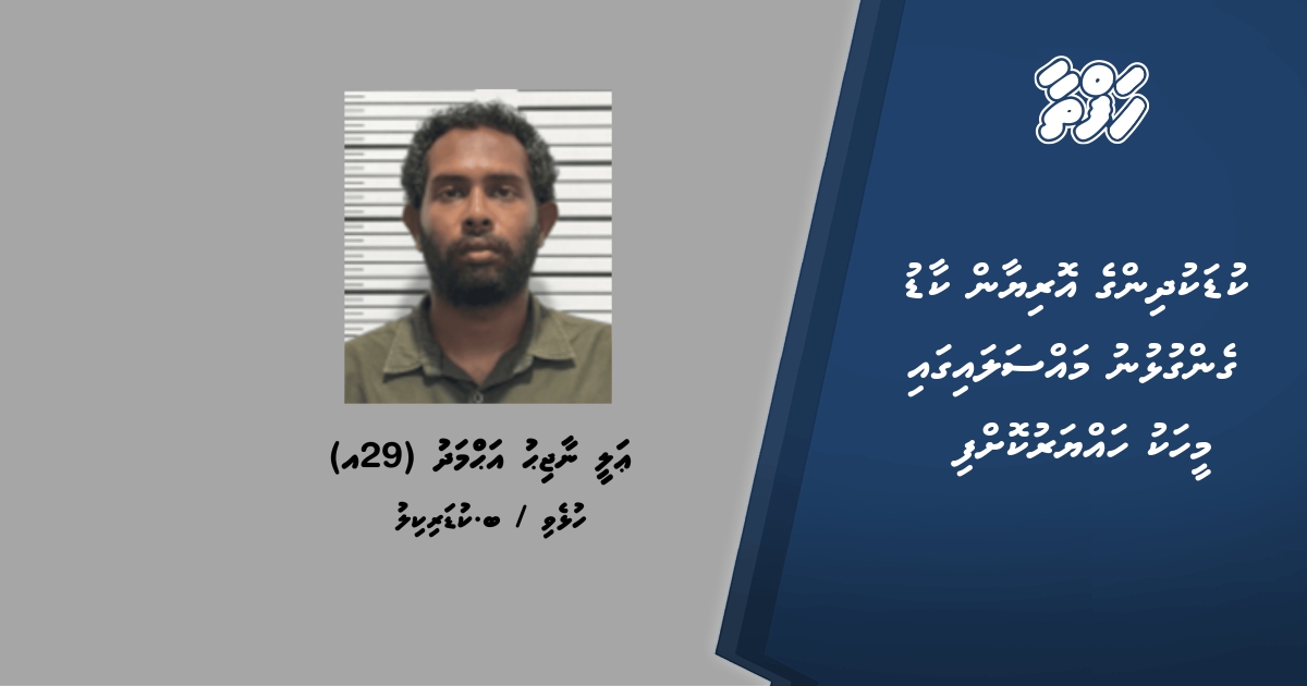 އެ މައްސަލައާ ގުޅިގެން ހައްޔަރުކޮށްފައިވަނީ ބ. ކުޑަރިކިލު, ހުޅެވި، އަލީ ނާޖިހު އަހުމަދު (29އ) އެވެ. އޭނާ ހައްޔަރުކޮށްފައިވަނީ މިމަހުގެ 13 ވަނަ ދުވަހުއެވެ.