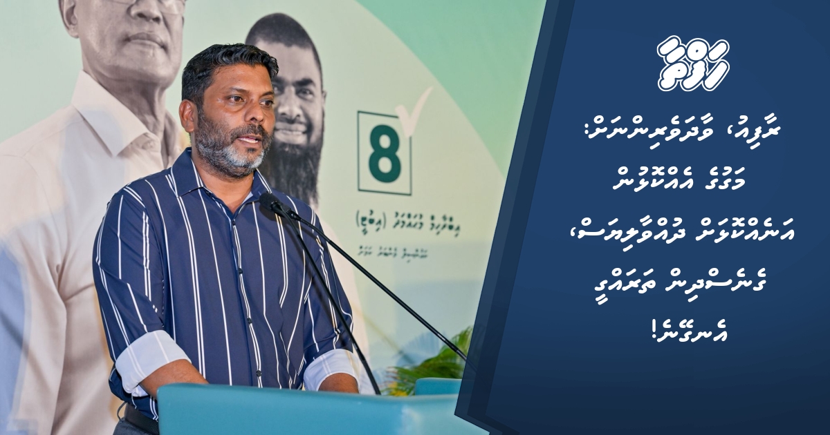 ކުރިއަށްއޮތް ލޯކަލް ކައުންސިލު އިންތިހާބުގެ ކެމްޕޭނަށް ޕީއެންސީގެ ގަލޮޅު ދެކުނު ދާއިރާގެ ކެމްޕޭނު ޖަގަހަ ހުޅުވުމަށް މިރޭ ބޭއްވި ރަސްމިއްޔާތުގައި ވާހަކަދައްކަވަމުން ރާފިއު ވިދާޅުވީ ރައީސް ޑރ. މުހައްމަދު މުއިއްޒަށް ވެރިކަމަށް ގެންނެވީ އެ މަނިކުފާނުގެ ސިޔާސަތާއި ގައުމު ކުރިއަރުވަން ބޭނުންވާ ގޮތާއި އެ ވިޝަން ރައްޔިތުންނަށް ރަނގަޅުވެގެން ކަމަށެވެ.
