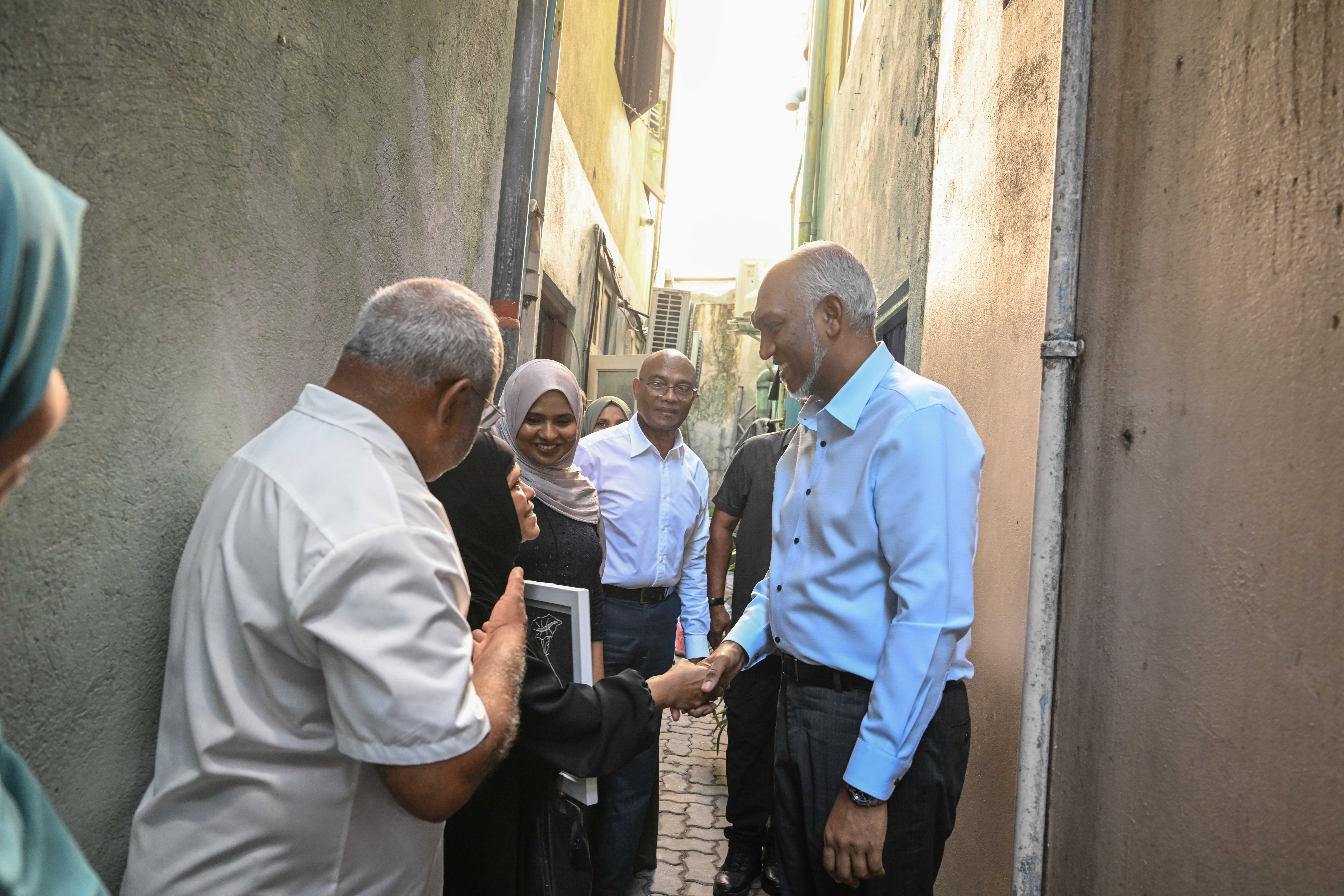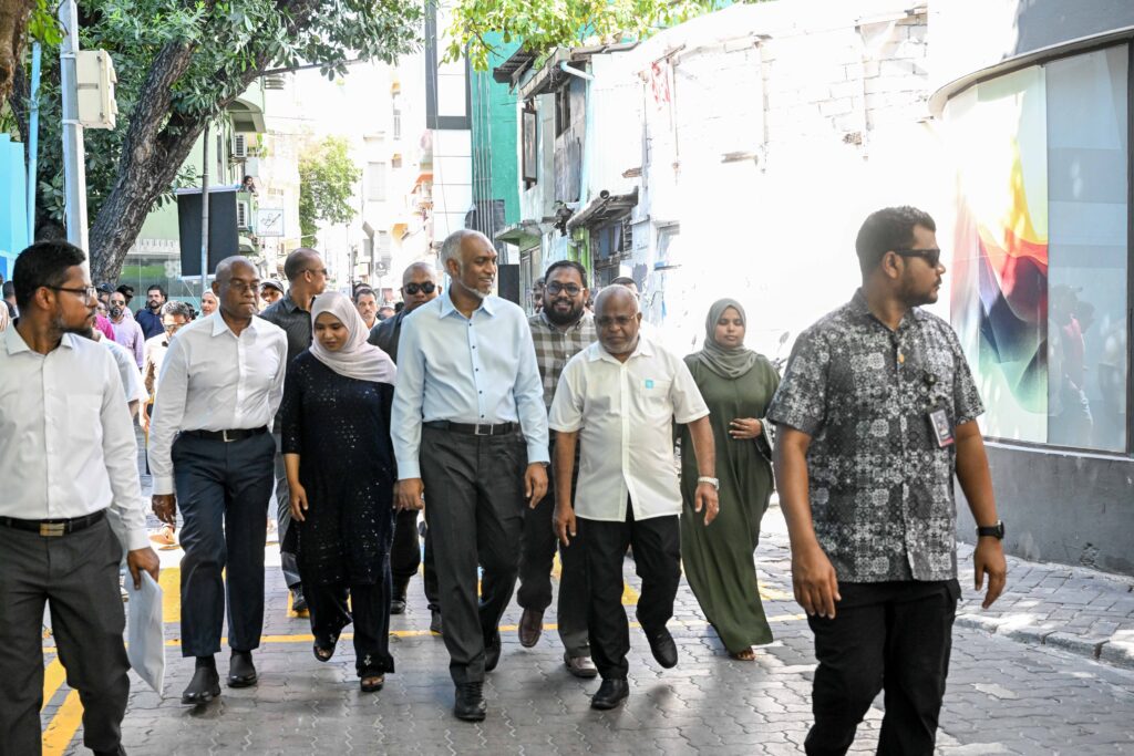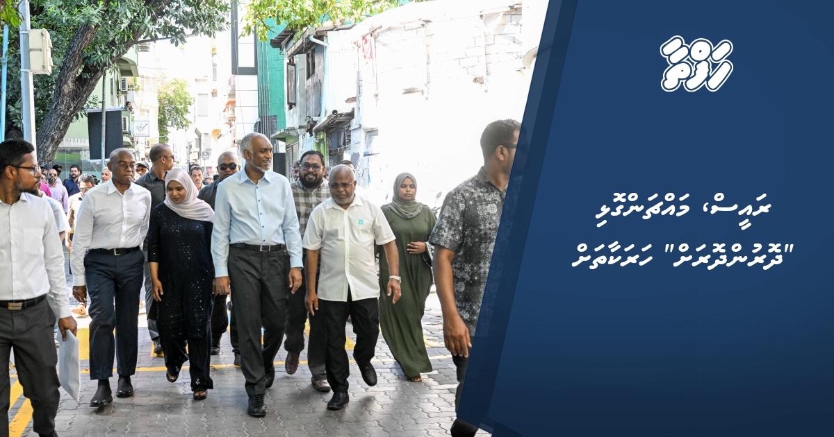 ކުރިއަށް އޮތް ލޯކަލް ކައުންސިލް އިންތިހާބާއި އަންހެނުންގެ ތަރައްގީއަށް މަސަައްކަތްކުރާ ކޮމިޓީގެ އިންތިހާބުގައި ސަރުކާރު ހިންގާ ޕީއެންސީގެ ފަރާތުން މާލެ ސިޓީ ކައުންސިލަށް ކުރިމަތިލައްވާފައިވާ ކެންޑިޑޭޓުންގެ ކެމްޕޭނުގައި ރައީސް ޑރ. މުހައްމަދު މުއިއްޒު މިއަދުވެސް ”ދޮރުންދޮރަށް“ ހަރަކާތުގައި ބައިވެރިވެވަޑައިގެންފިއެވެ.