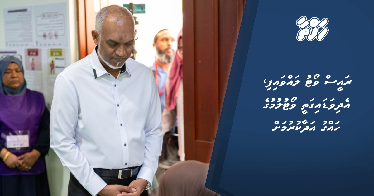 މިހާރު ކުރިއަށް ގެންދާ ލޯކަލް ކައުންސިލްތަކުގެ އިންތިހާބާއި އަންހެނުންގެ ކޮމިޓީތަކުގެ އިންތިހާބު އަދި ހިޔާލު ހޯދުމުގެ ވޯޓުގައި ރައީސް ޑރ. މުހައްމަދު މުއިއްޒު ވޯޓު ލައްވައިފި އެވެ