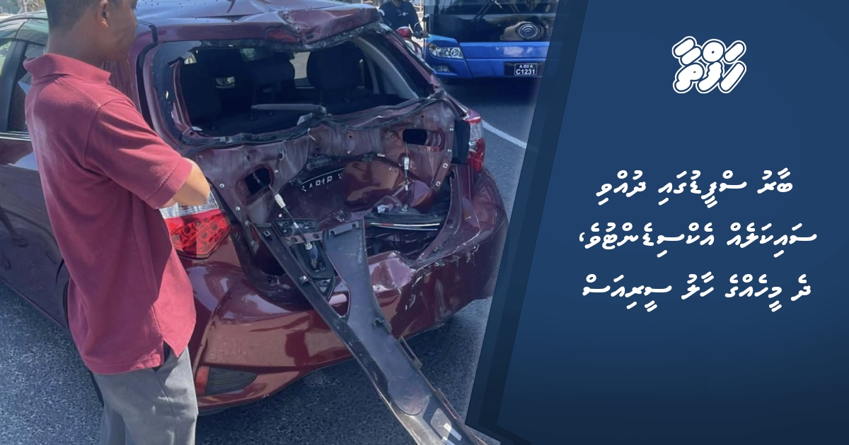 އެ އެކްސިޑެންޓު ހިނގަން މެދުވެރިވީ ބާރު ސްޕީޑްގައި ދުއްވި ސައިކަލެއް ކާރުގެ ފަހަތުގައި ޖެހިގެން ކަމަށާއި އެ އެކްސިޑެންޓުގައި ހިމެނޭ ސައިކަލުގައި ތިބި ދެ މީހުންނަށް އެކިވަރުގެ އަނިޔާ ލިބުމާ ގުޅިގެން، އެ މީހުންނަށް މިހާރު ދަނީ އައިޖީއެމް ހޮސްޕިޓަލުގައި ފަރުވާދެމުން ކަމަށް ފުލުހުން ބުންޏެވެ.