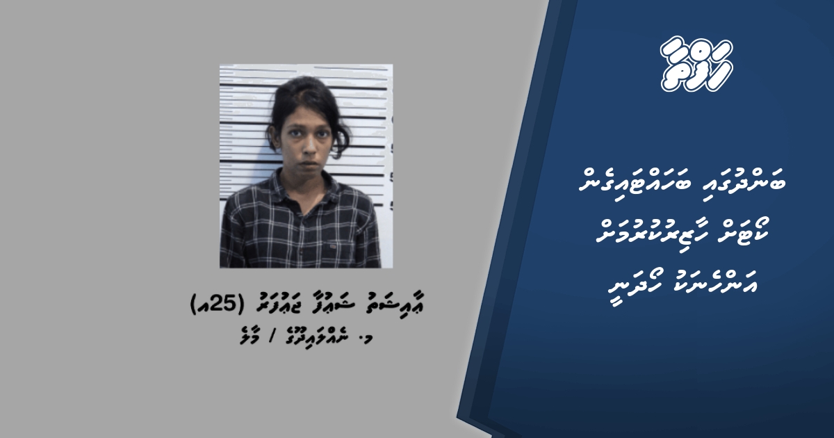 ފުލުހުން ބުނީ، ކޯޓު އަމުރެއްގެ ދަށުން ހޯދަމުންދަނީ މާލެ، މ. ނެއްލައިދޫގެ، އާއިޝަތު ޝައުފާ ޖައުފަރު (25އ) ކަމަށެވެ.